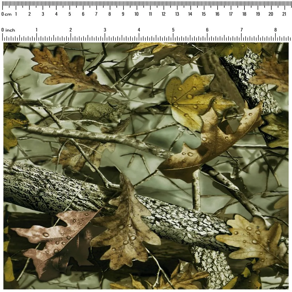 This realistic pattern features a blend of fallen leaves, twigs, and bark in rich earthy tones of brown, yellow, and green, capturing the serene beauty of a forest in autumn. The intricate details, including raindrops on leaves and textured bark, bring a lifelike touch to any surface. Perfect for customizing hunting gear, outdoor equipment, or rustic-inspired décor, this film delivers a natural and professional finish. Use over a neutral or light-colored base to enhance the depth and vibrancy of the design.