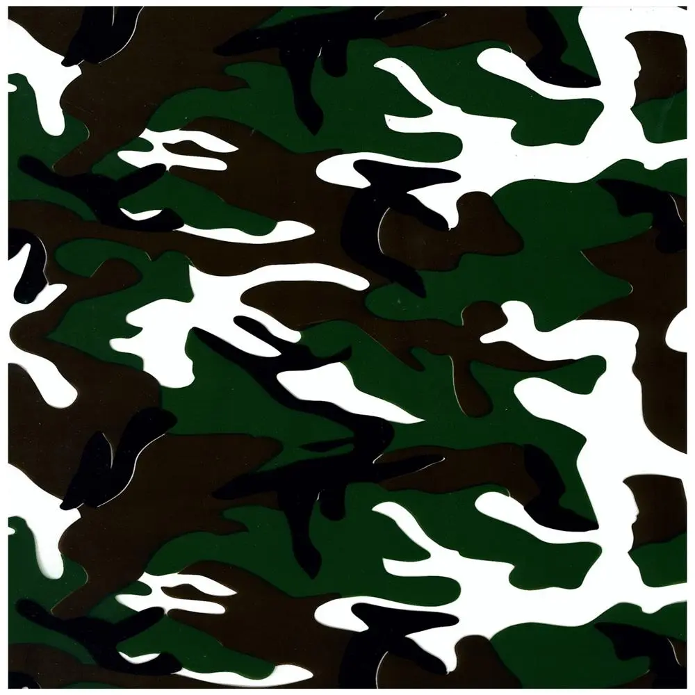 The Woodland Classic camo is a tried and true camo that has been around for generations. This was one of the first camos used in the military for concealment in the woods. Years later this is still a very popular hit with many people wanting this great looking camo. With the green, brown and black inks on this image, it gives a great looking pattern to anything it is applied to. The white in this film is clear so any lighter or darker base color can be used.